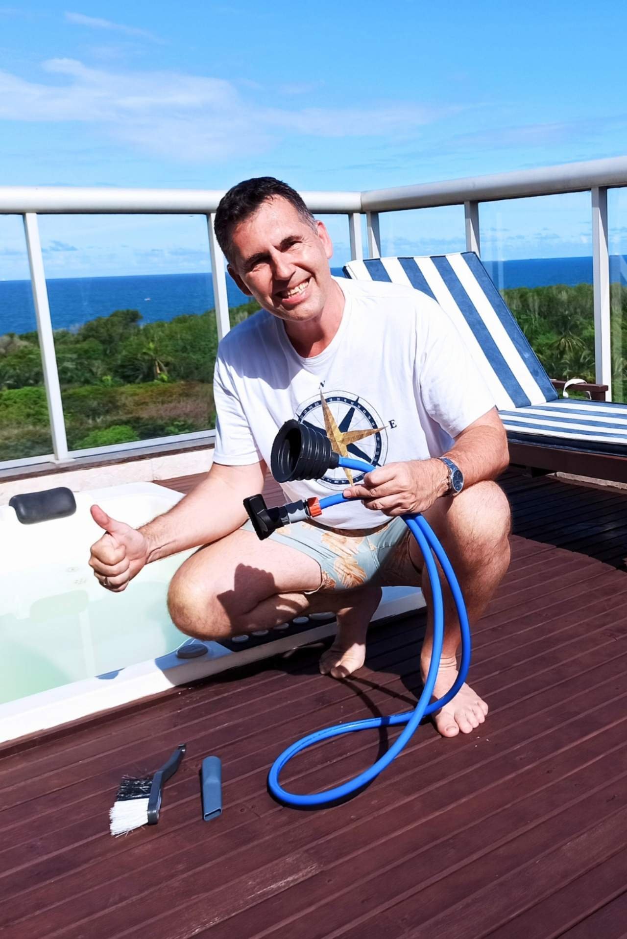 is a unique and innovative solution, developed exclusively for hot tubs and spa baths. It offers a convenient way to remove dirt and debris from the sides, seats, and bottom — without the need to drain the water. In just a few minutes, your tub is clean and ready to use, saving time, water, and effort.